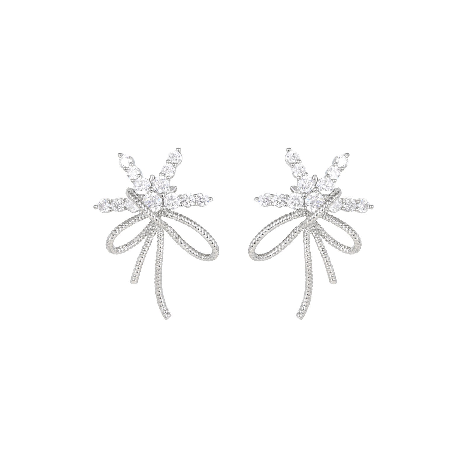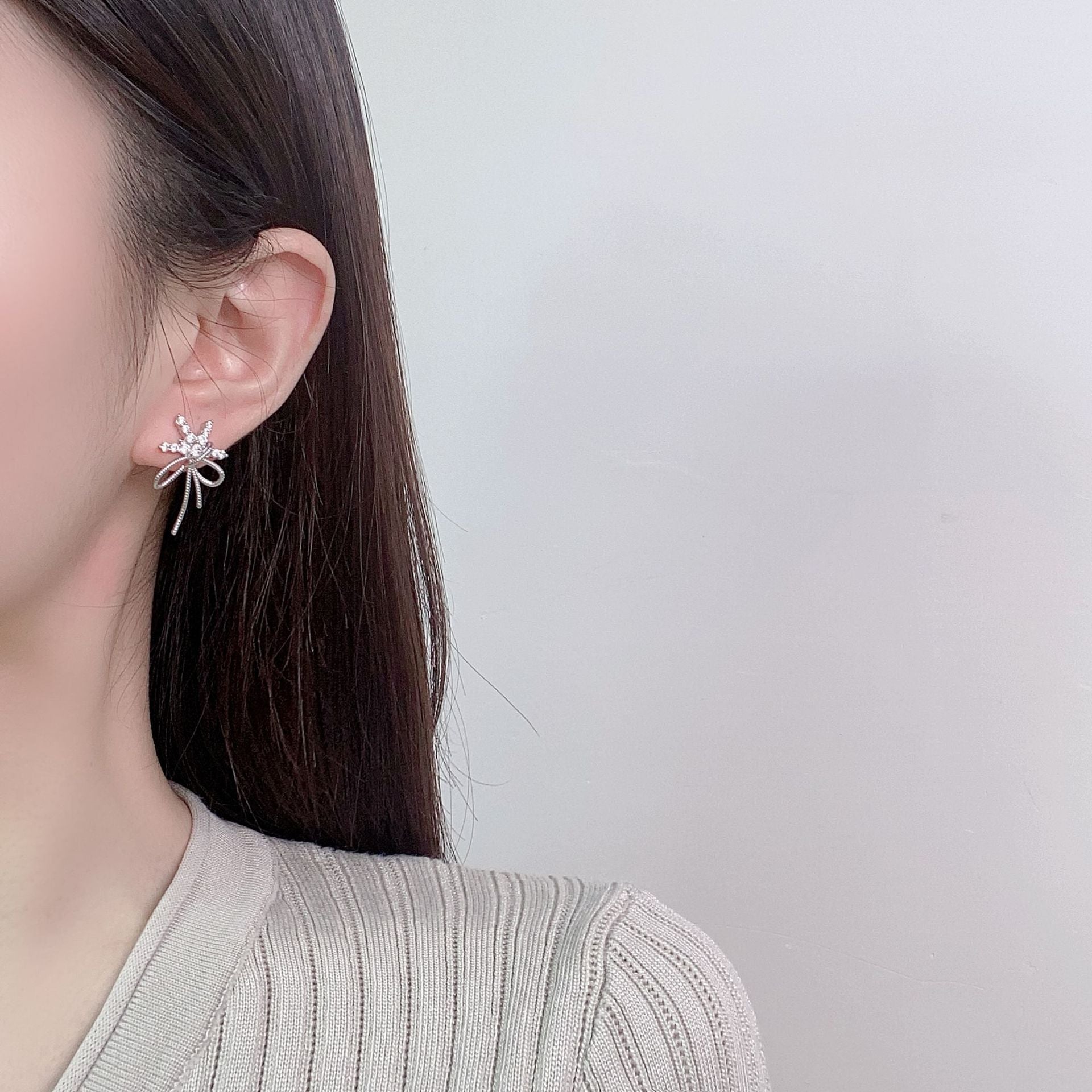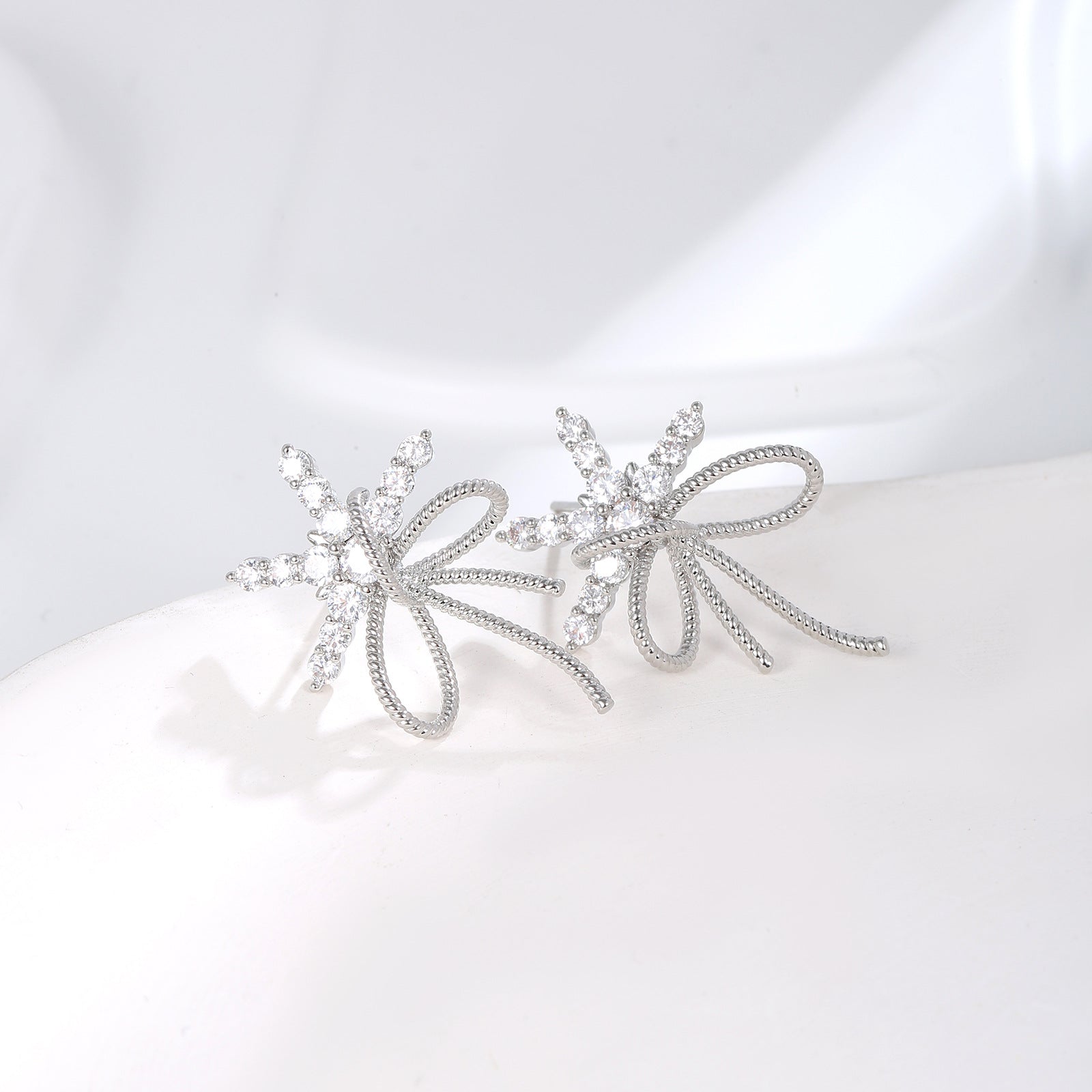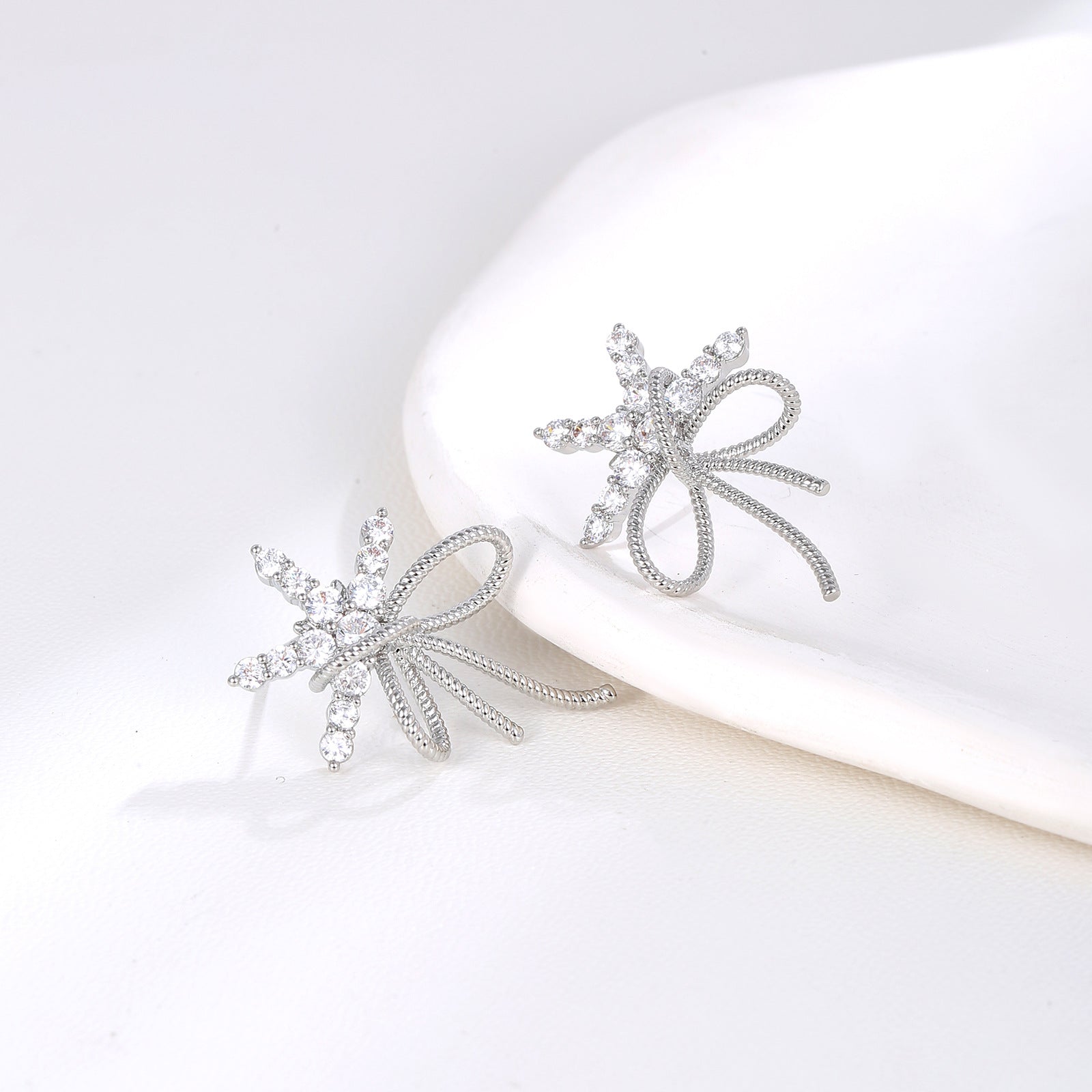 Ribbon Snow Bow Set Zircon Earrings for Women