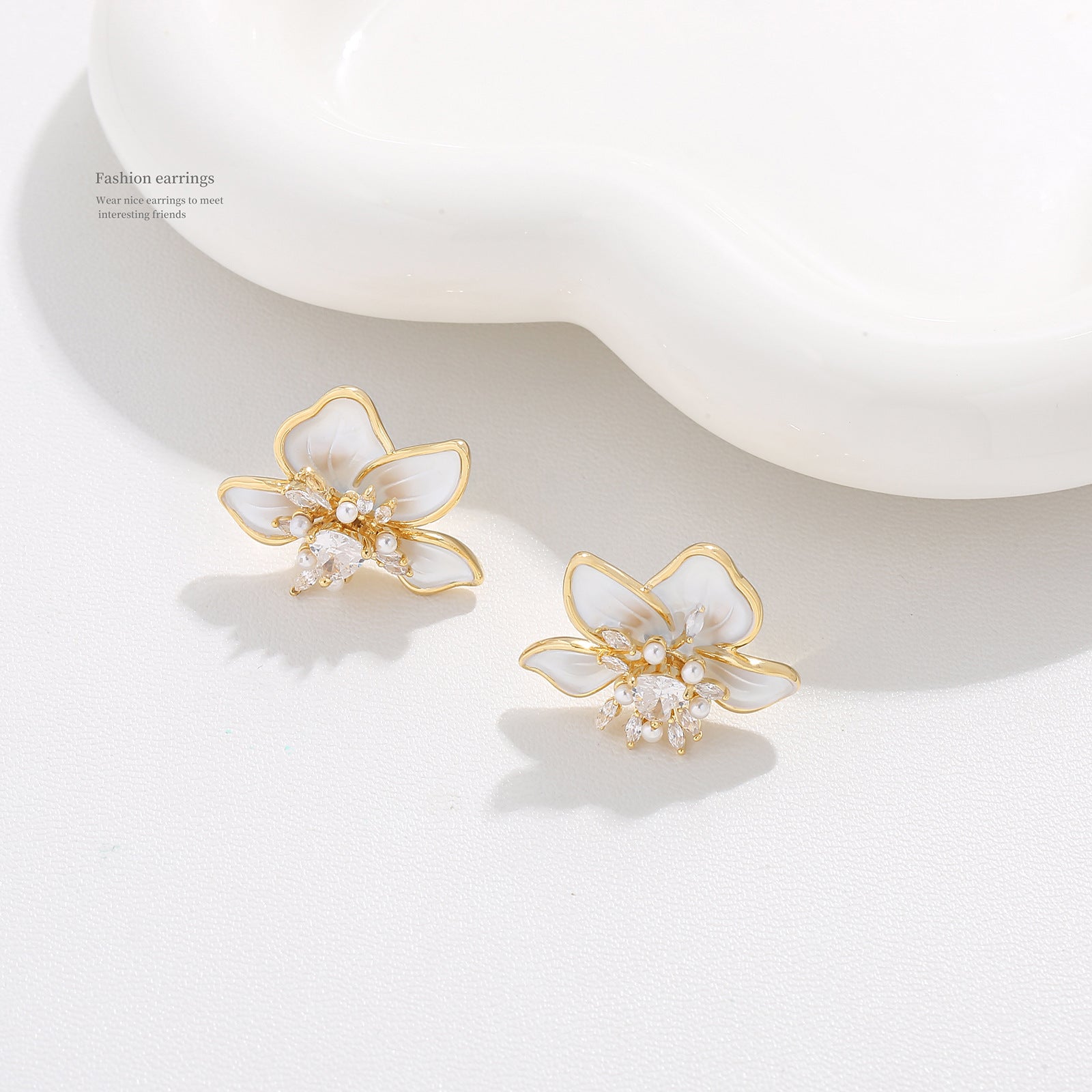 White Oil Drop Real Tiger Zircon Flower Stamen High-end Women's Earrings