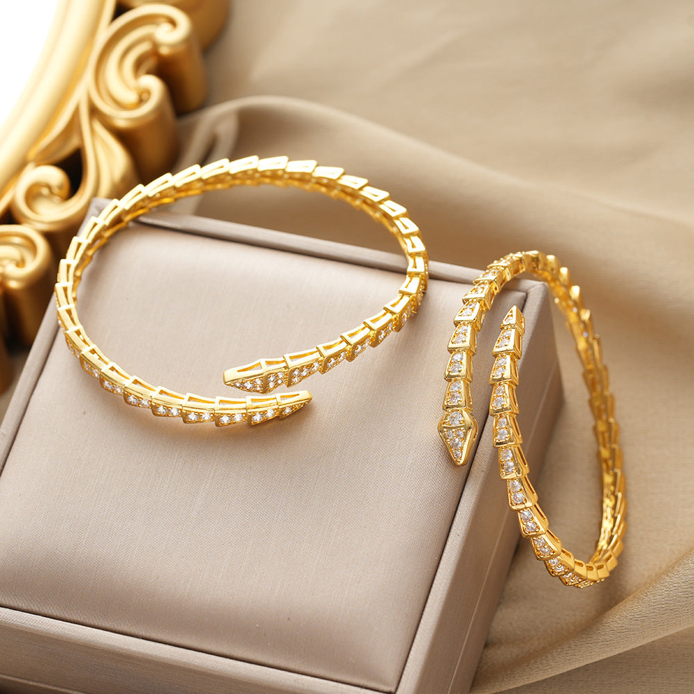 Bracelet Snake-Shaped Simple Opening Niche Popular Bracelet Starry with Diamonds Fashion High Sense