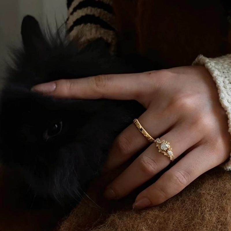 Full Diamond Brushed Carved Gold Light Luxury Stackable Open Ring